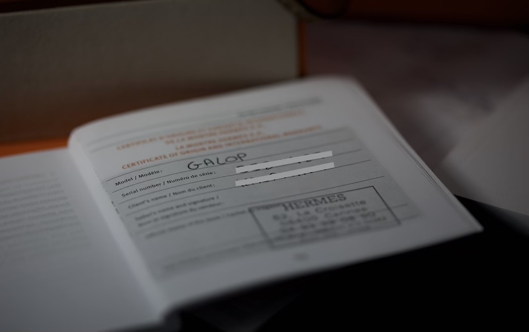 Hermès Galop GA1.110, vendue avec sa boîte et ses papiers d’origine, datés du 16 avril 2024.
