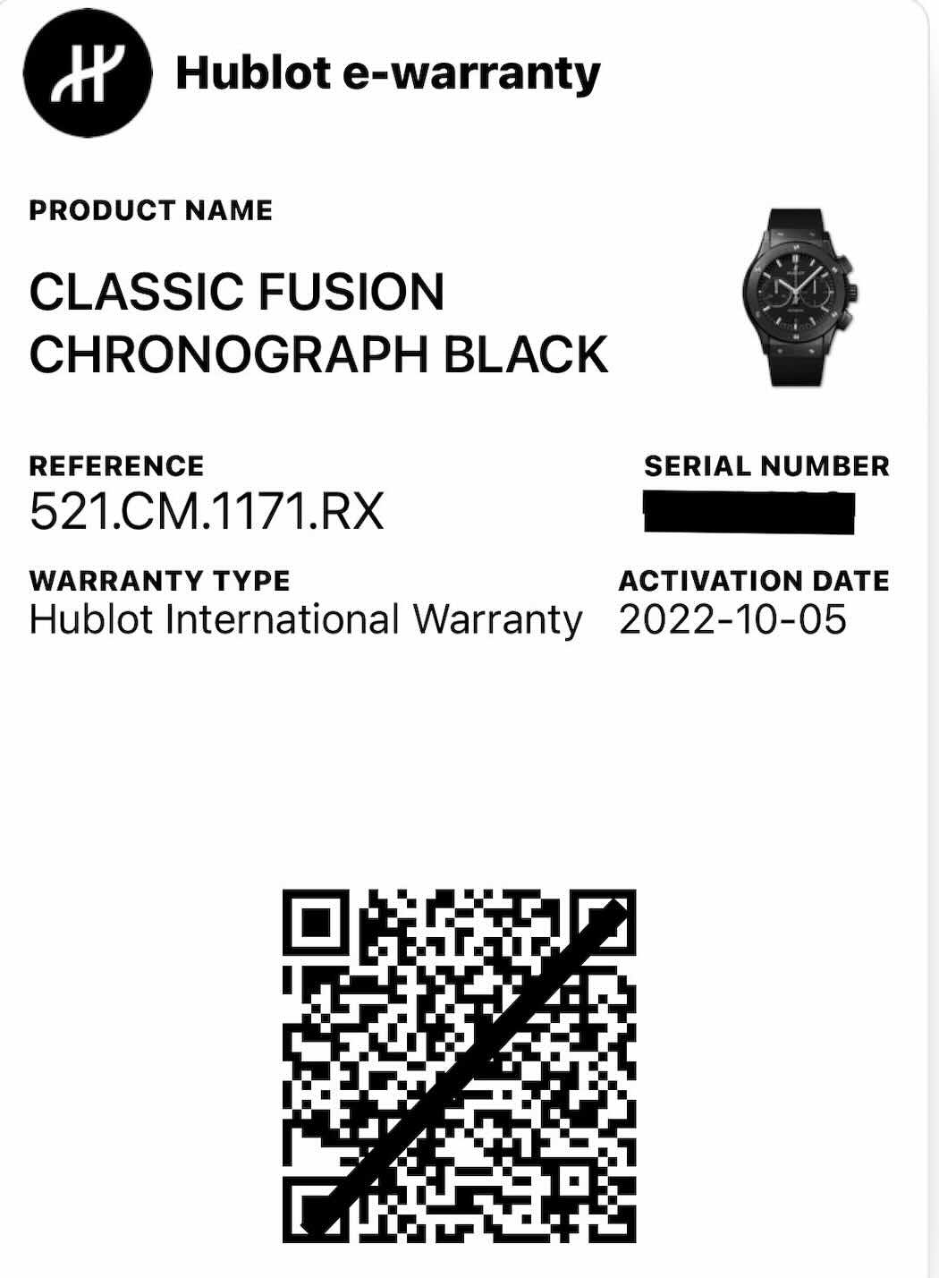 – Garantie internationale Hublot valable jusqu’en octobre 2029