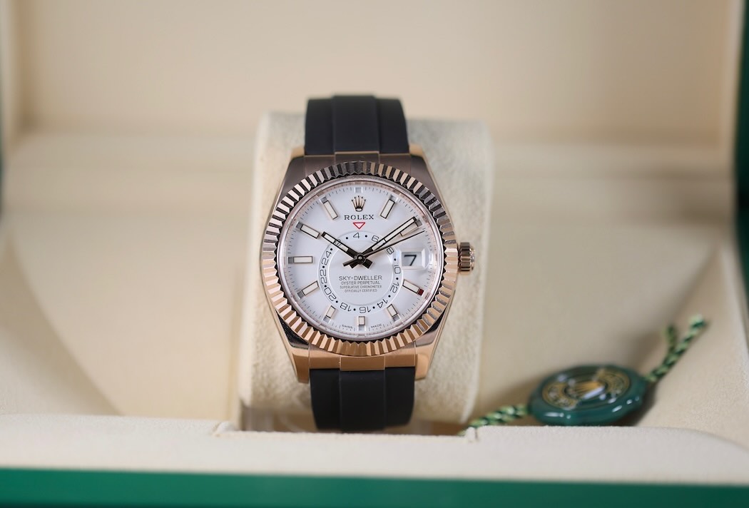 Rolex Sky-Dweller 42mm – Or Everose – Cadran blanc – Bracelet Oysterflex
