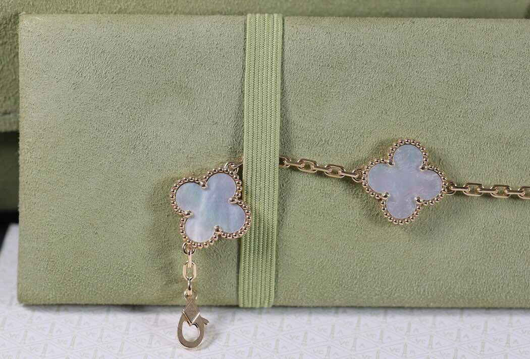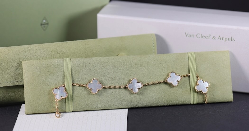 Ce modèle se compose de 5 motifs Alhambra, finement travaillés, offrant une allure à la fois délicate et immédiatement reconnaissable. Son équilibre parfait entre raffinement et modernité en fait une pièce incontournable, aussi bien pour un porté quotidien que pour des occasions plus habillées.